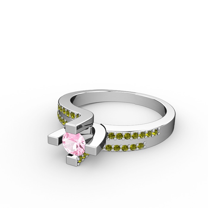 Pembe kuvars ve peridot 925 ayar gümüş yüzük