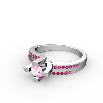 Pembe kuvars ve rodolit garnet 8 ayar beyaz altın yüzük
