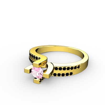 Pembe kuvars ve siyah zirkon 14 ayar altın yüzük