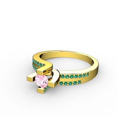Pembe kuvars ve yeşil kuvars 8 ayar altın yüzük