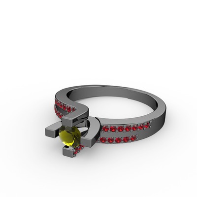Peridot ve garnet 925 ayar siyah rodyum kaplama gümüş yüzük