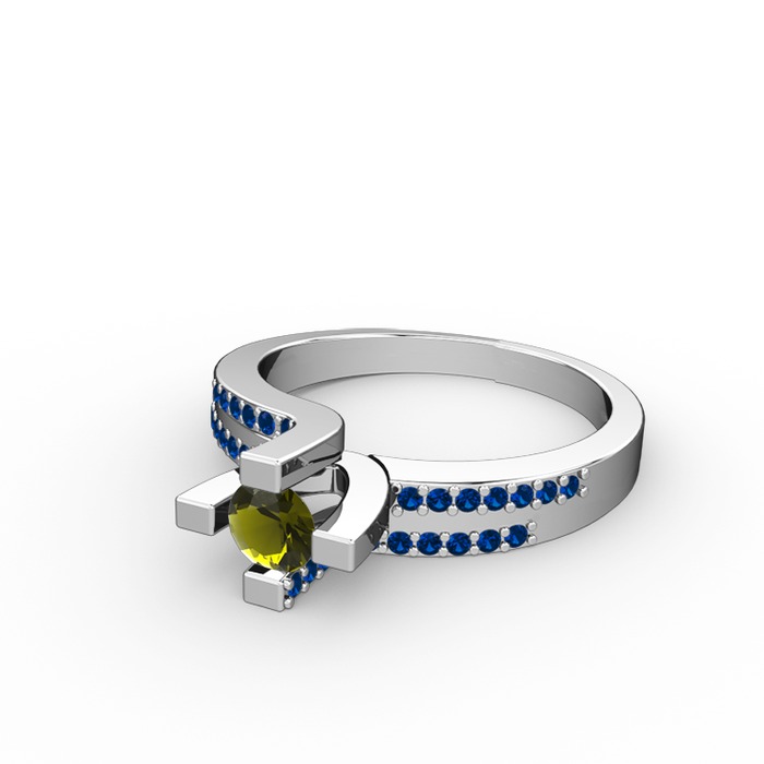 Peridot ve lab safir 8 ayar beyaz altın yüzük