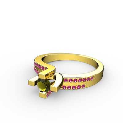 Peridot ve rodolit garnet 925 ayar altın kaplama gümüş yüzük