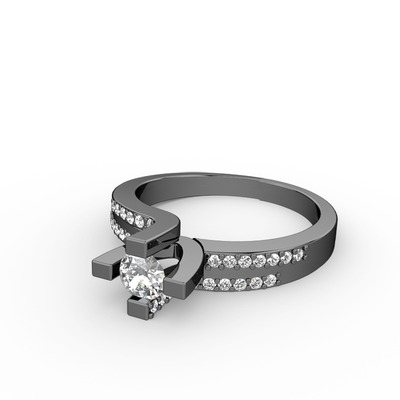 Pırlanta ve beyaz zirkon 925 ayar siyah rodyum kaplama gümüş yüzük (0.24 karat)