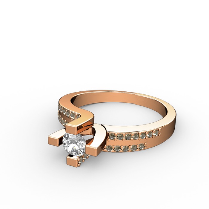 Pırlanta ve dumanlı kuvars 14 ayar rose altın yüzük (0.24 karat)