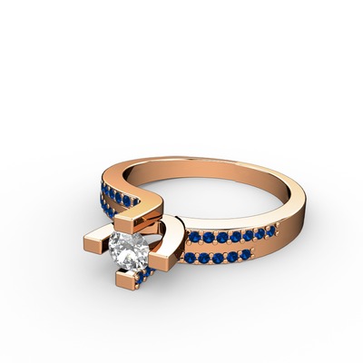 Pırlanta ve lab safir 925 ayar rose altın kaplama gümüş yüzük (0.24 karat)