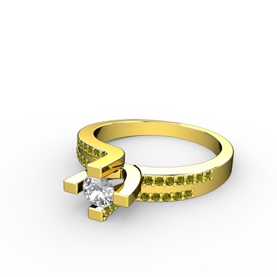 Pırlanta ve peridot 14 ayar altın yüzük (0.24 karat)
