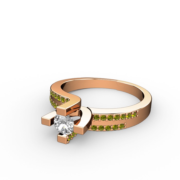 Pırlanta ve peridot 14 ayar rose altın yüzük (0.24 karat)