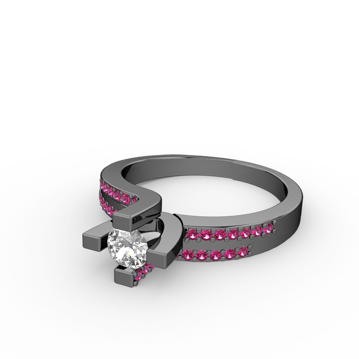 Pırlanta ve rodolit garnet 925 ayar siyah rodyum kaplama gümüş yüzük (0.24 karat)