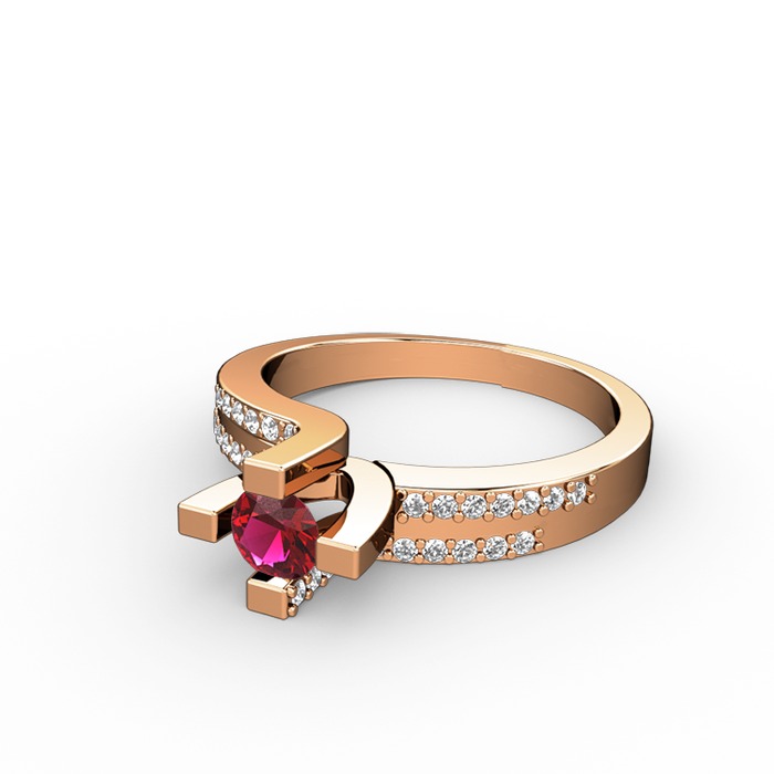 Rodolit garnet ve beyaz zirkon 14 ayar rose altın yüzük