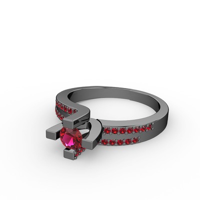 Rodolit garnet ve garnet 925 ayar siyah rodyum kaplama gümüş yüzük