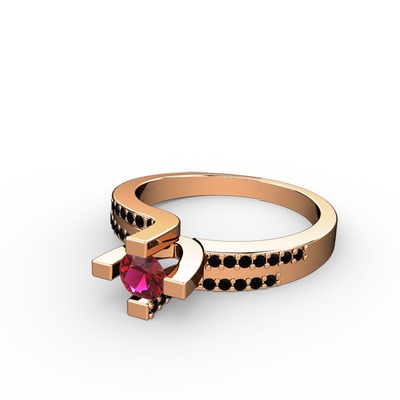 Rodolit garnet ve siyah zirkon 18 ayar rose altın yüzük