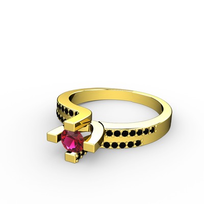 Rodolit garnet ve siyah zirkon 8 ayar altın yüzük