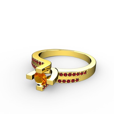 Sitrin ve garnet 925 ayar altın kaplama gümüş yüzük