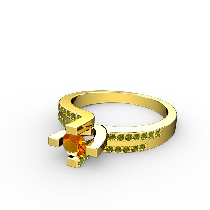 Sitrin ve peridot 925 ayar altın kaplama gümüş yüzük