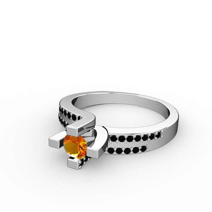 Sitrin ve siyah zirkon 14 ayar beyaz altın yüzük