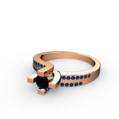 Siyah zirkon ve lab safir 14 ayar rose altın yüzük