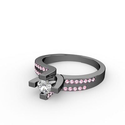 Swarovski ve pembe kuvars 925 ayar siyah rodyum kaplama gümüş yüzük