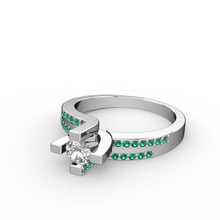 Swarovski ve yeşil kuvars 8 ayar beyaz altın yüzük