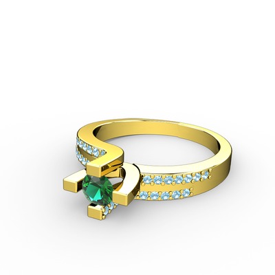 Yeşil kuvars ve akuamarin 8 ayar altın yüzük