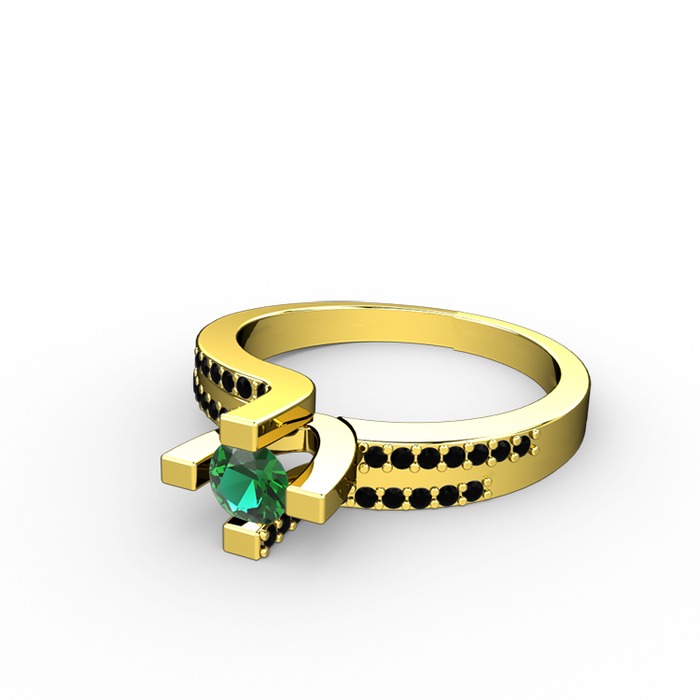 Yeşil kuvars ve siyah zirkon 14 ayar altın yüzük