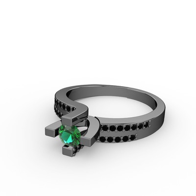 Yeşil kuvars ve siyah zirkon 925 ayar siyah rodyum kaplama gümüş yüzük