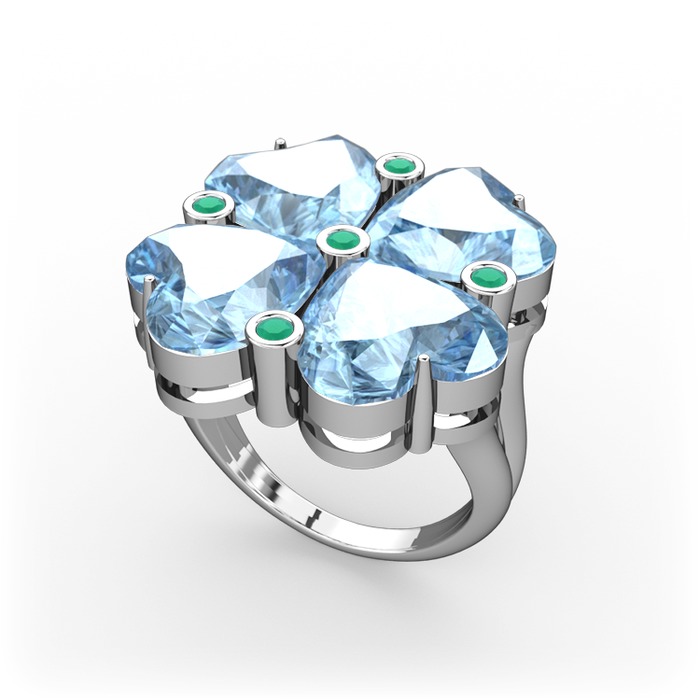 Akuamarin ve kök zümrüt 8 ayar beyaz altın yüzük