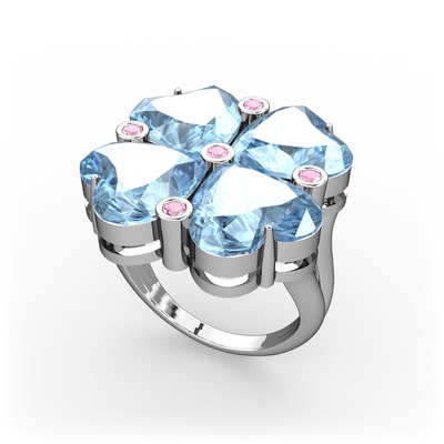 Akuamarin ve pembe kuvars 14 ayar beyaz altın yüzük