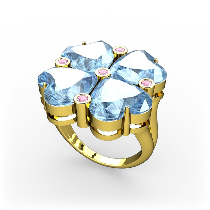 Akuamarin ve pembe kuvars 8 ayar altın yüzük