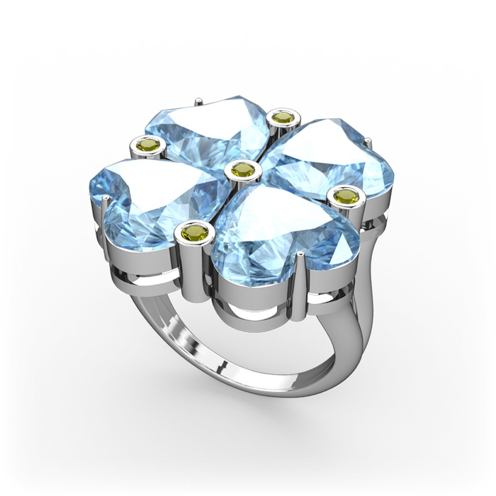 Akuamarin ve peridot 14 ayar beyaz altın yüzük
