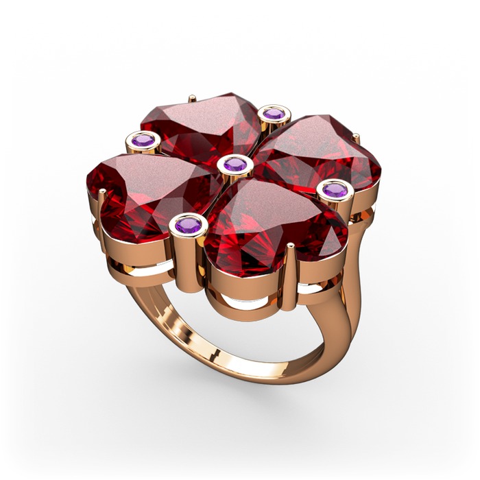 Garnet ve ametist 18 ayar rose altın yüzük