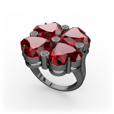 Garnet ve dumanlı kuvars 925 ayar siyah rodyum kaplama gümüş yüzük
