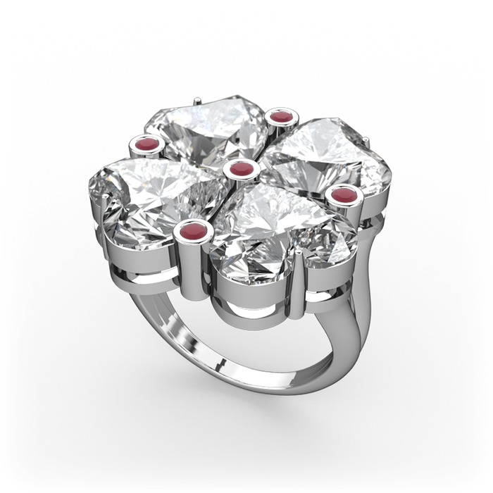 Swarovski ve kök yakut 18 ayar beyaz altın yüzük