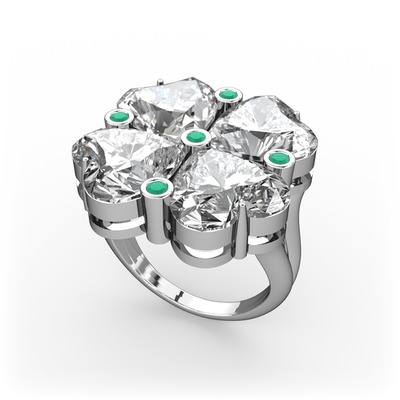 Swarovski ve kök zümrüt 925 ayar gümüş yüzük