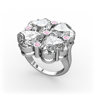 Swarovski ve pembe kuvars 14 ayar beyaz altın yüzük