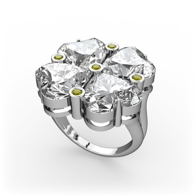 Swarovski ve peridot 8 ayar beyaz altın yüzük