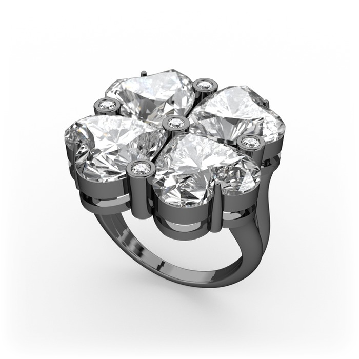Swarovski ve pırlanta 925 ayar siyah rodyum kaplama gümüş yüzük (0.18 karat)