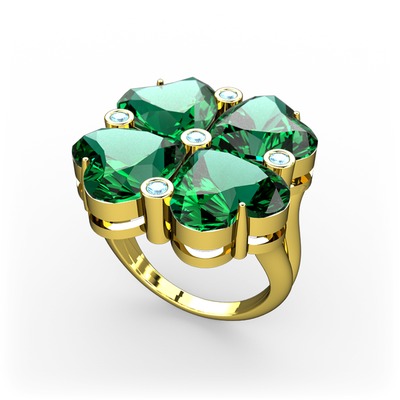 Yeşil kuvars ve akuamarin 14 ayar altın yüzük
