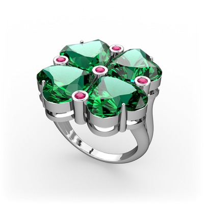 Yeşil kuvars ve rodolit garnet 8 ayar beyaz altın yüzük