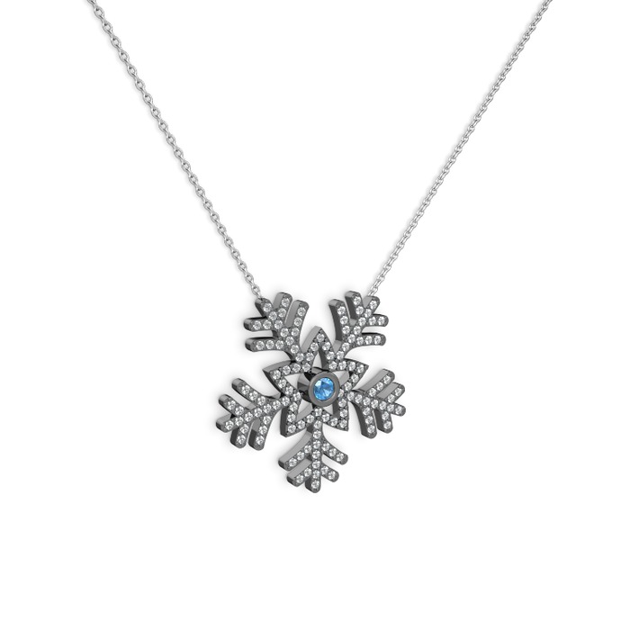 Akuamarin ve beyaz zirkon 925 ayar siyah rodyum kaplama gümüş kolye (40 cm beyaz altın rolo zincir)