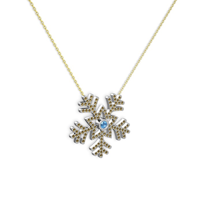 Akuamarin ve dumanlı kuvars 14 ayar beyaz altın kolye (40 cm altın rolo zincir)