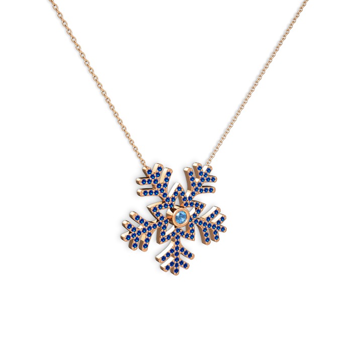 Akuamarin ve lab safir 8 ayar rose altın kolye (40 cm gümüş rolo zincir)