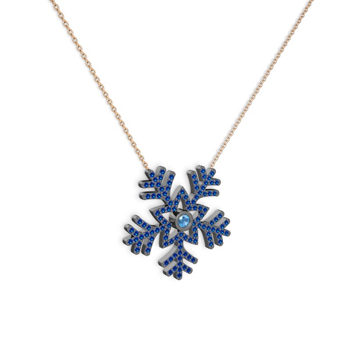 Akuamarin ve lab safir 925 ayar siyah rodyum kaplama gümüş kolye (40 cm gümüş rolo zincir)
