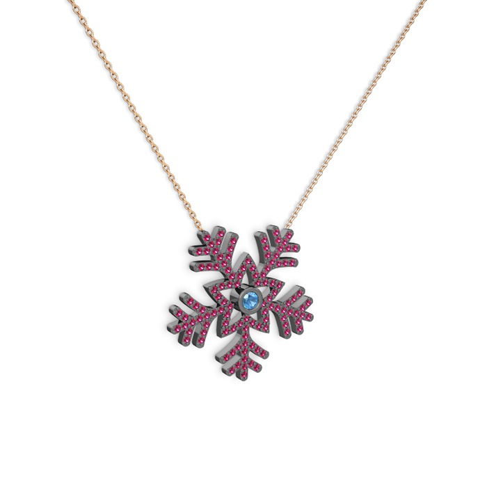 Akuamarin ve rodolit garnet 925 ayar siyah rodyum kaplama gümüş kolye (40 cm rose altın rolo zincir)