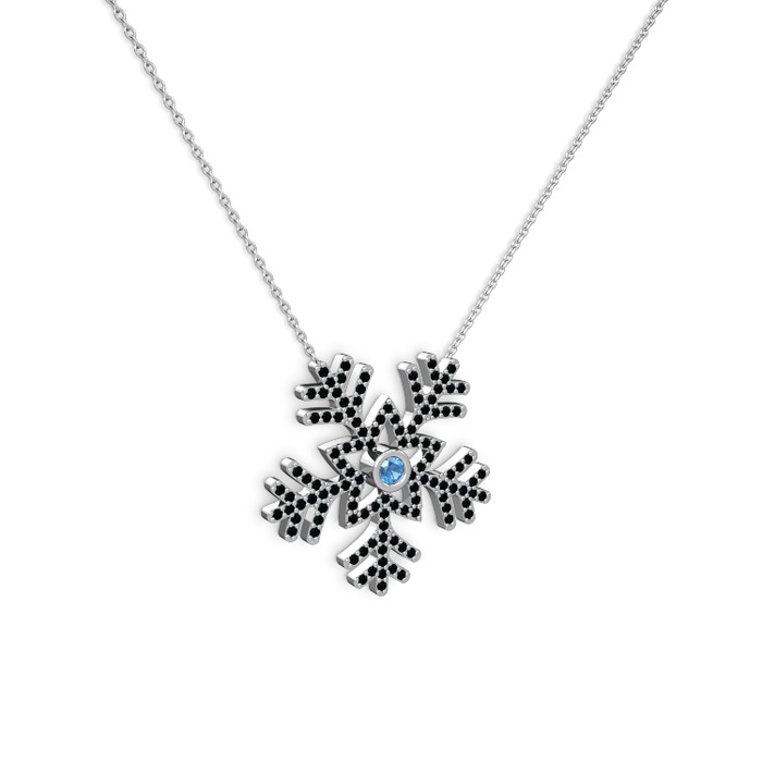 Akuamarin ve siyah zirkon 8 ayar beyaz altın kolye (40 cm beyaz altın rolo zincir)