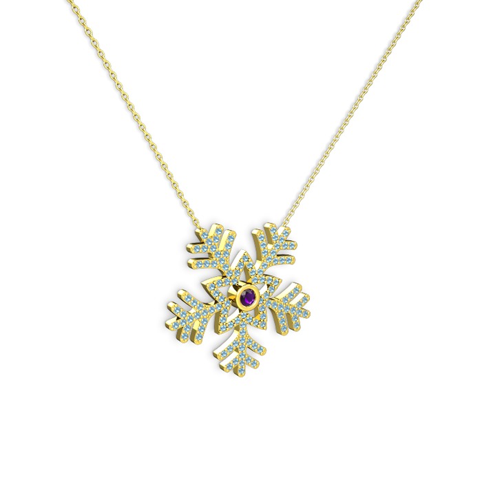 Ametist ve akuamarin 14 ayar altın kolye (40 cm gümüş rolo zincir)