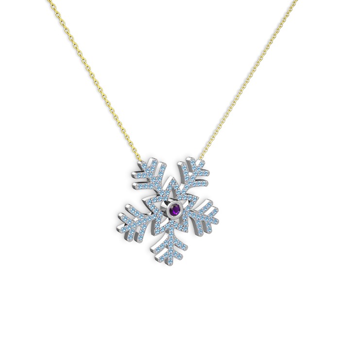 Ametist ve akuamarin 925 ayar gümüş kolye (40 cm altın rolo zincir)