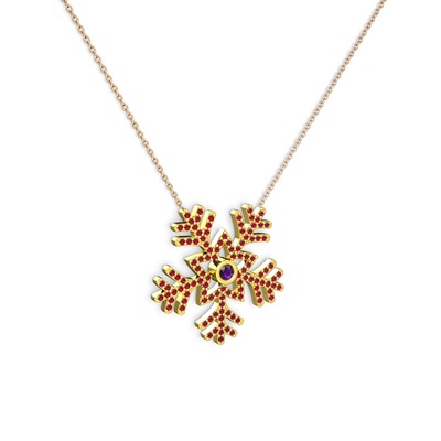 Ametist ve garnet 18 ayar altın kolye (40 cm rose altın rolo zincir)