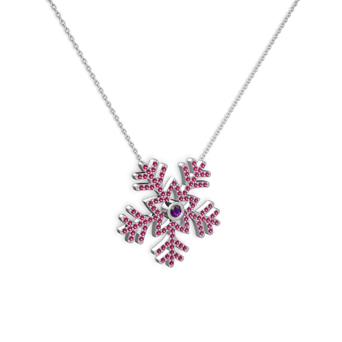 Ametist ve rodolit garnet 18 ayar beyaz altın kolye (40 cm gümüş rolo zincir)