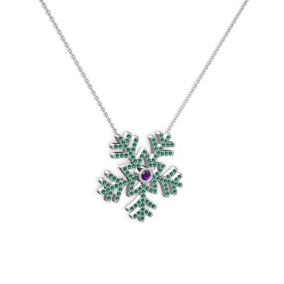 Ametist ve yeşil kuvars 925 ayar gümüş kolye (40 cm gümüş rolo zincir)